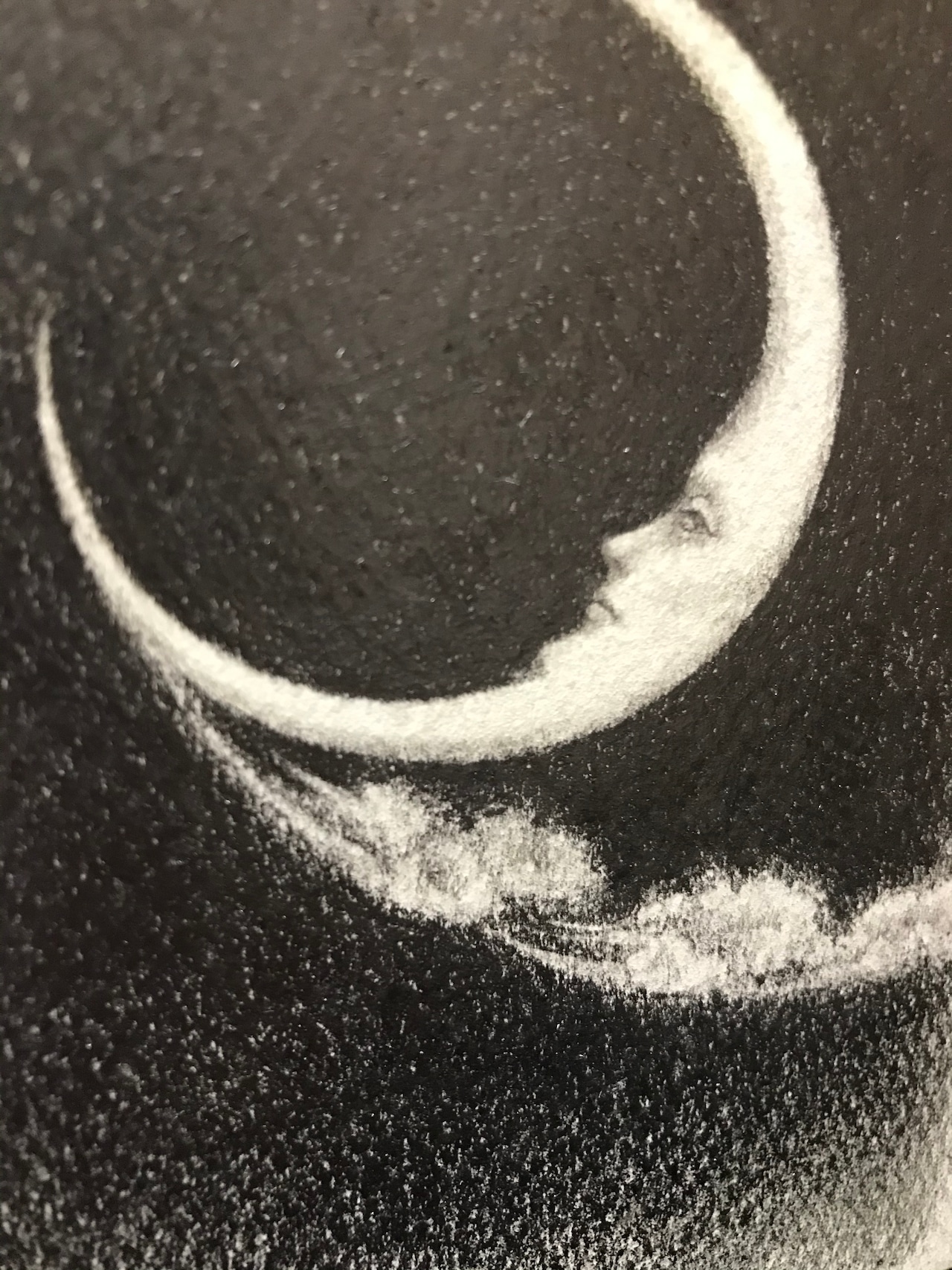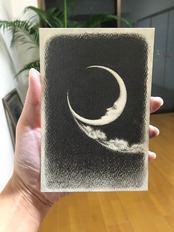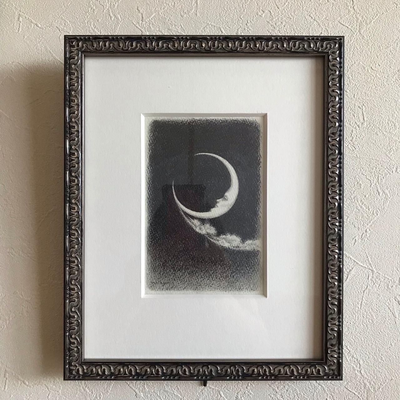 ハガキサイズで、お部屋に飾りやすい大きさです。黒が深くて大人っぽくて、月夜のワインのお供に最適…。